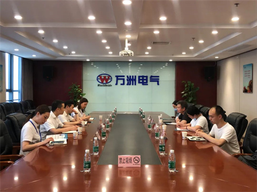惠風(fēng)和暢,萬(wàn)里無(wú)云。5月25日下午,湖北文理學(xué)院理工學(xué)院副院長(zhǎng)汪波帶領(lǐng)電信系主任、專業(yè)老師到萬(wàn)洲電氣開(kāi)展企校合作交流洽談,萬(wàn)洲電氣董事長(zhǎng)、總經(jīng)理趙世運(yùn)參加座談交流。