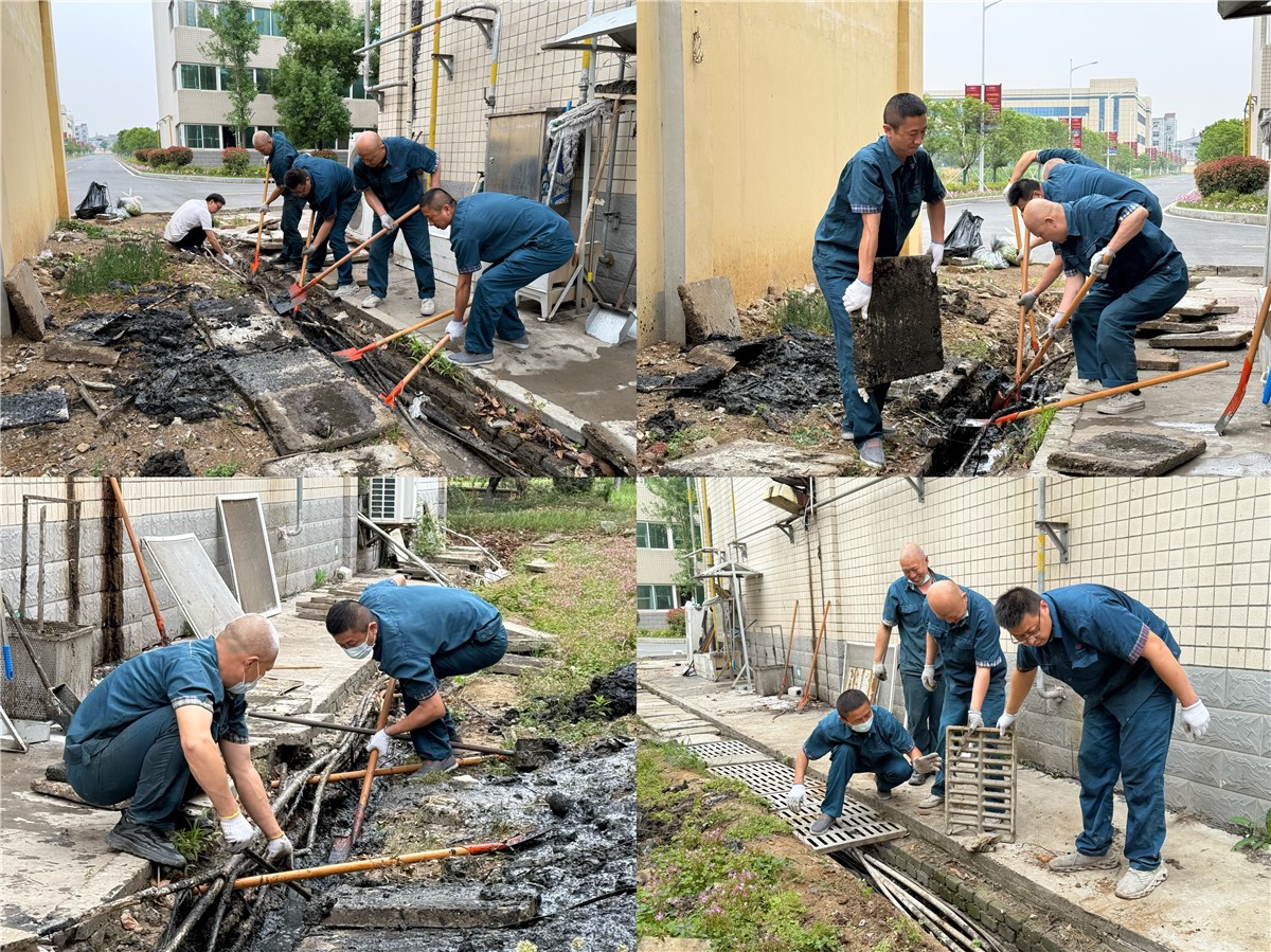 為預防廠區線路安全風險, 5月15日上午,萬洲機械志愿者隊伍高效完成廠區食堂西側電纜溝清理工作。