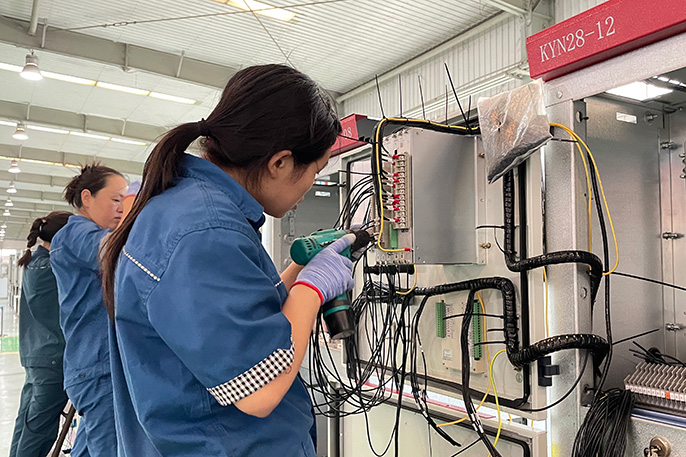 比賽開始,生產(chǎn)車間瞬間變身“比武場”,一場技術(shù)與速度的較量火熱上演。機裝班、線裝班、老人組、新人組同臺競技,各展所長。參賽選手們在規(guī)定的時間內(nèi),按照工藝流程緊張比拼,折彎布線力求精準(zhǔn),機裝操作有條不紊。橫平豎直的線路、嫻熟利落的動作,充分展示了參賽選手扎實的技能功底,每個人都攥著一股勁,力爭速度第一、質(zhì)量最佳、工藝最優(yōu)。